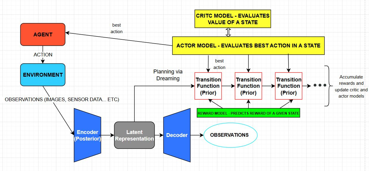 DreamerV1 world model implementation on Gridworld tasks, based on Dream to Control (Hafner et al., 2019). |